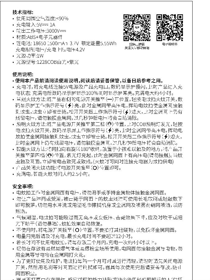 紫光诱蚊电蚊拍